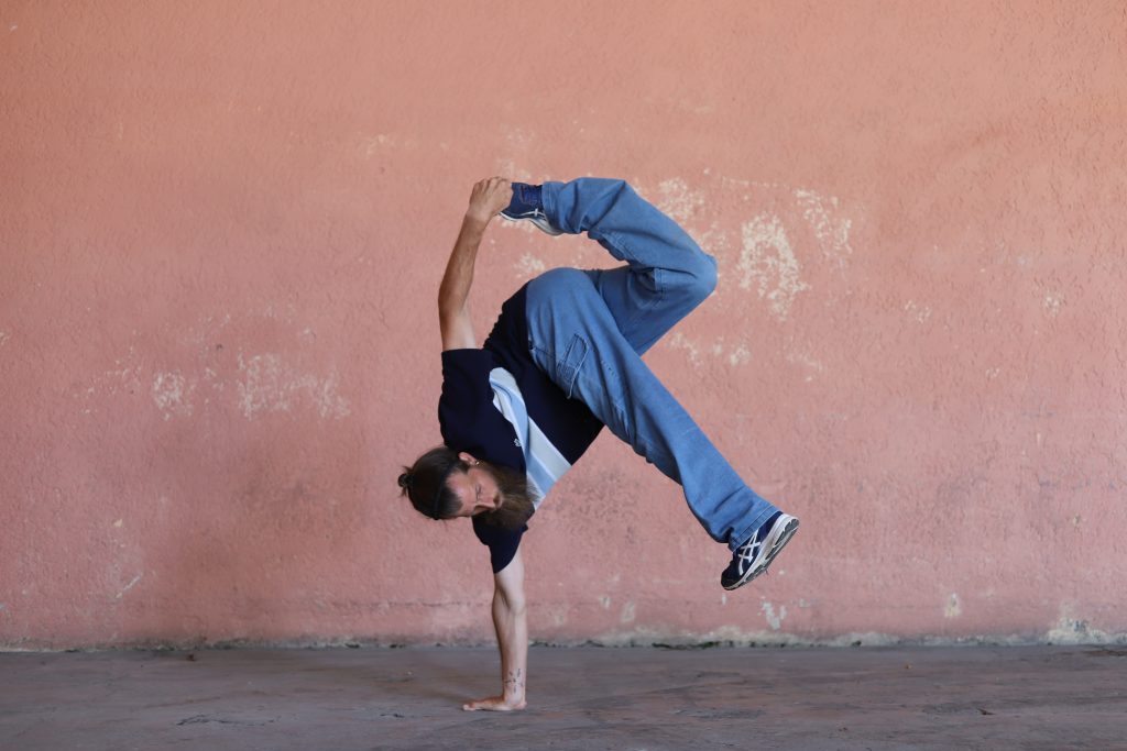 circulaires, d’improvisation, découverte et approfondissement des notions de base comme le transfert de poids, les différents appuis, les qualités de mouvements comme la fluidité ou le saccadé, le travail au sol ou « floorwork » (basé sur des mouvements de breakdance) ainsi que la